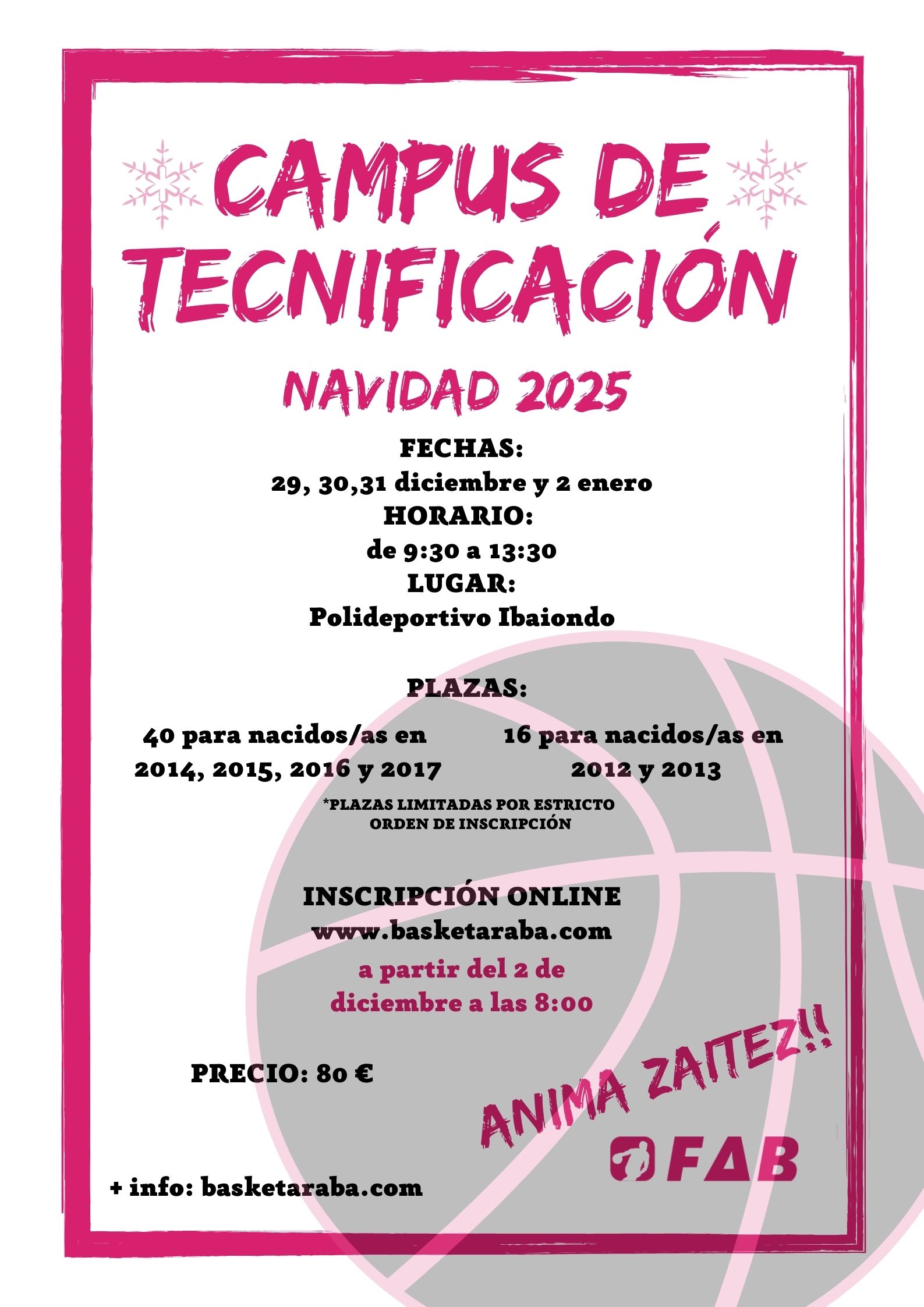 ¿Te apasiona el baloncesto? ¡Entonces no puedes perderte el Campus de Tecnificación que organiza la Federación Alavesa de Baloncesto para esta próxima Navidad! 🏆🔥
